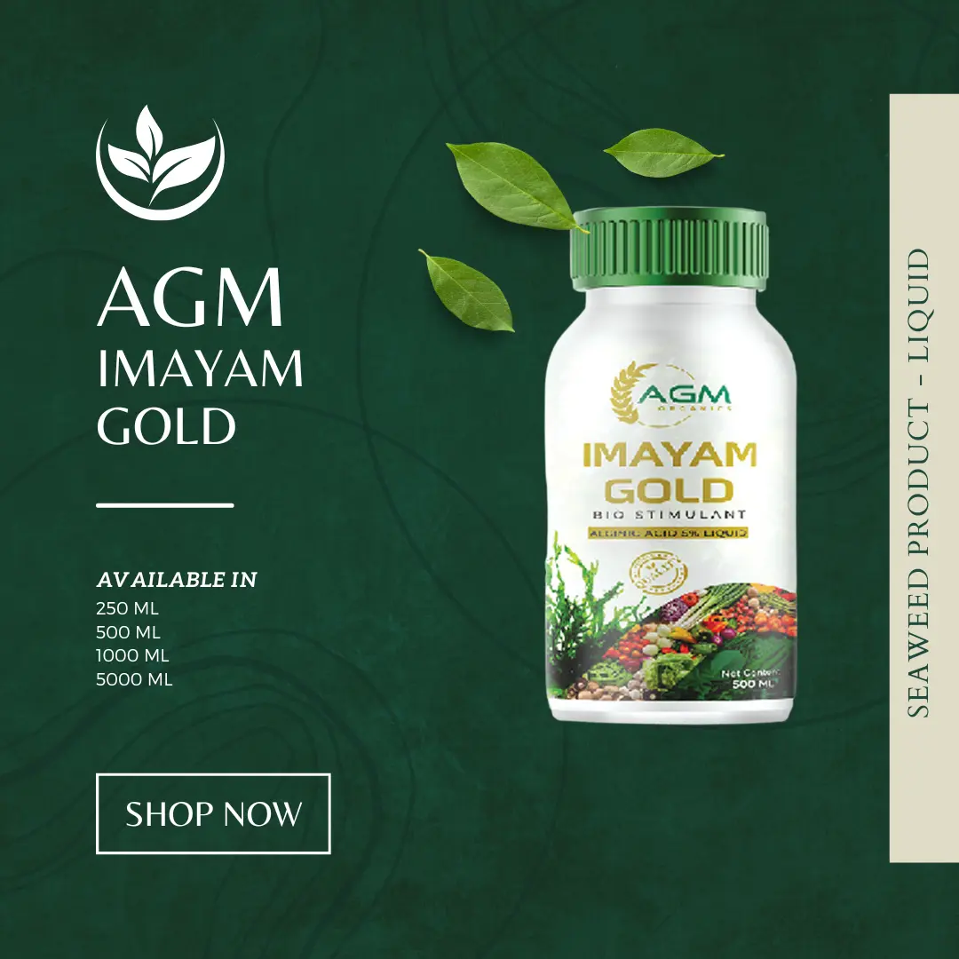 AGM IMAYAM GOLD Biostimulant is an alginic acid liquid formulation. Alginic acid increases the contact area, making it easier for water-soluble substances to enter the plant cell through the surface cell membrane of the stem and leaf, So that, the plant can absorb the nutrients in the seaweed extract most effectively.